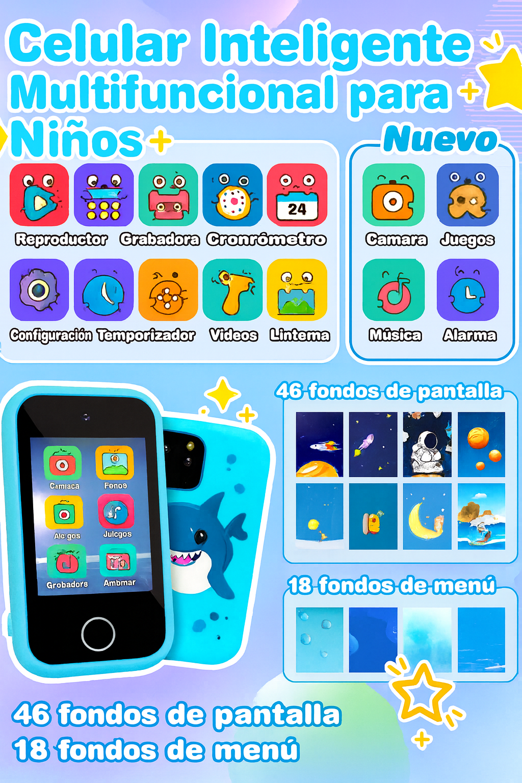 CELULAR PARA NIÑOS CON PANTALLA TÁCTIL HD, CÁMARA DOBLE Y REPRODUCTOR MP3