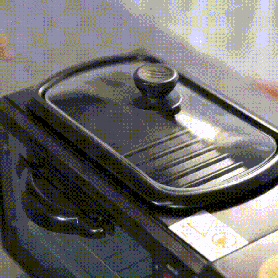 - ✅ 3 funciones en 1: Cafetera, horno tostador y sartén superior para freír o calentar.