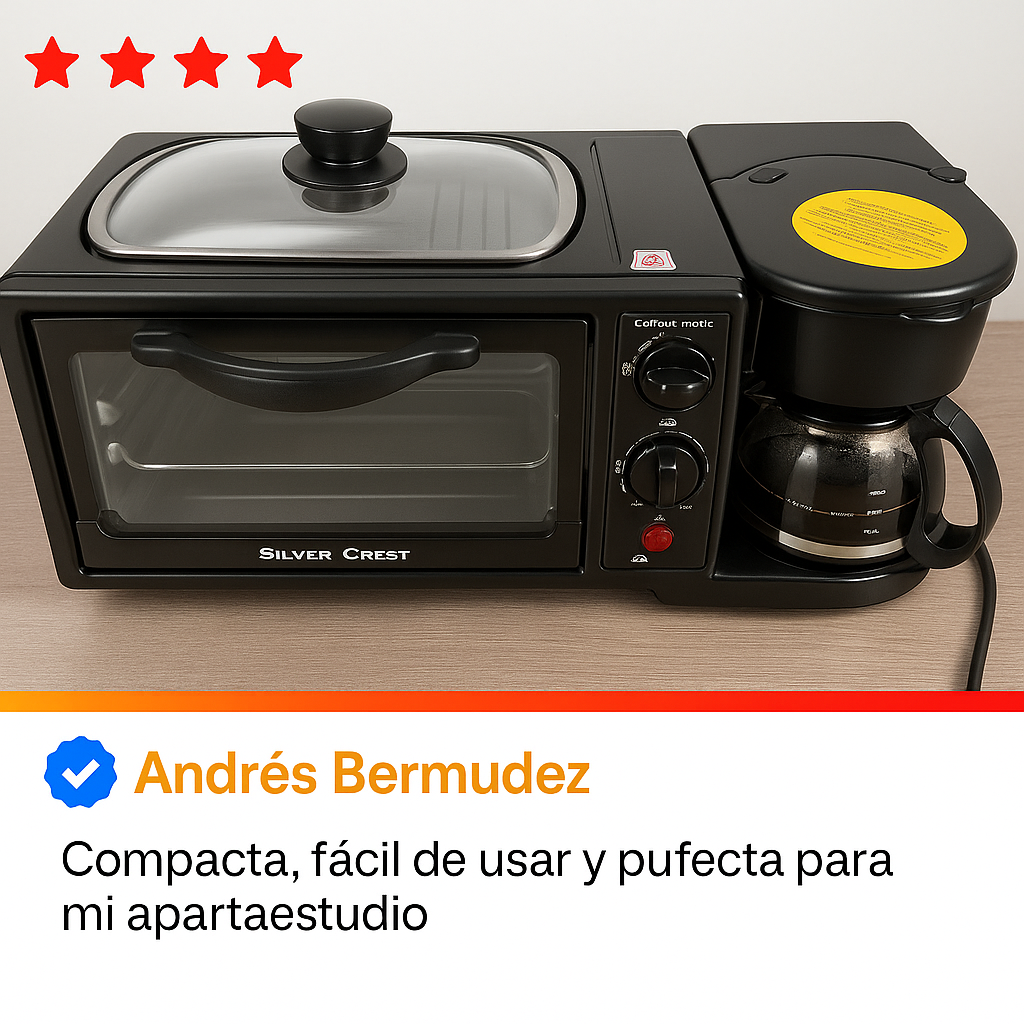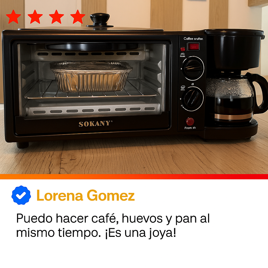 - ✅ Cocina simultánea: Prepara el café mientras se tuestan los panes y se fríen los huevos.