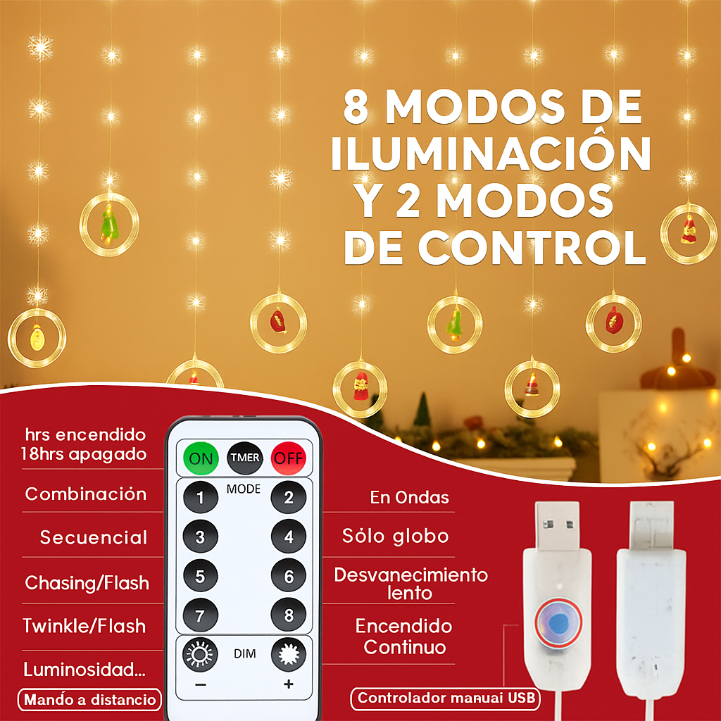NAVILED® CORTINA DE LUCES CON FIGURAS NAVIDEÑAS (3 METROS)