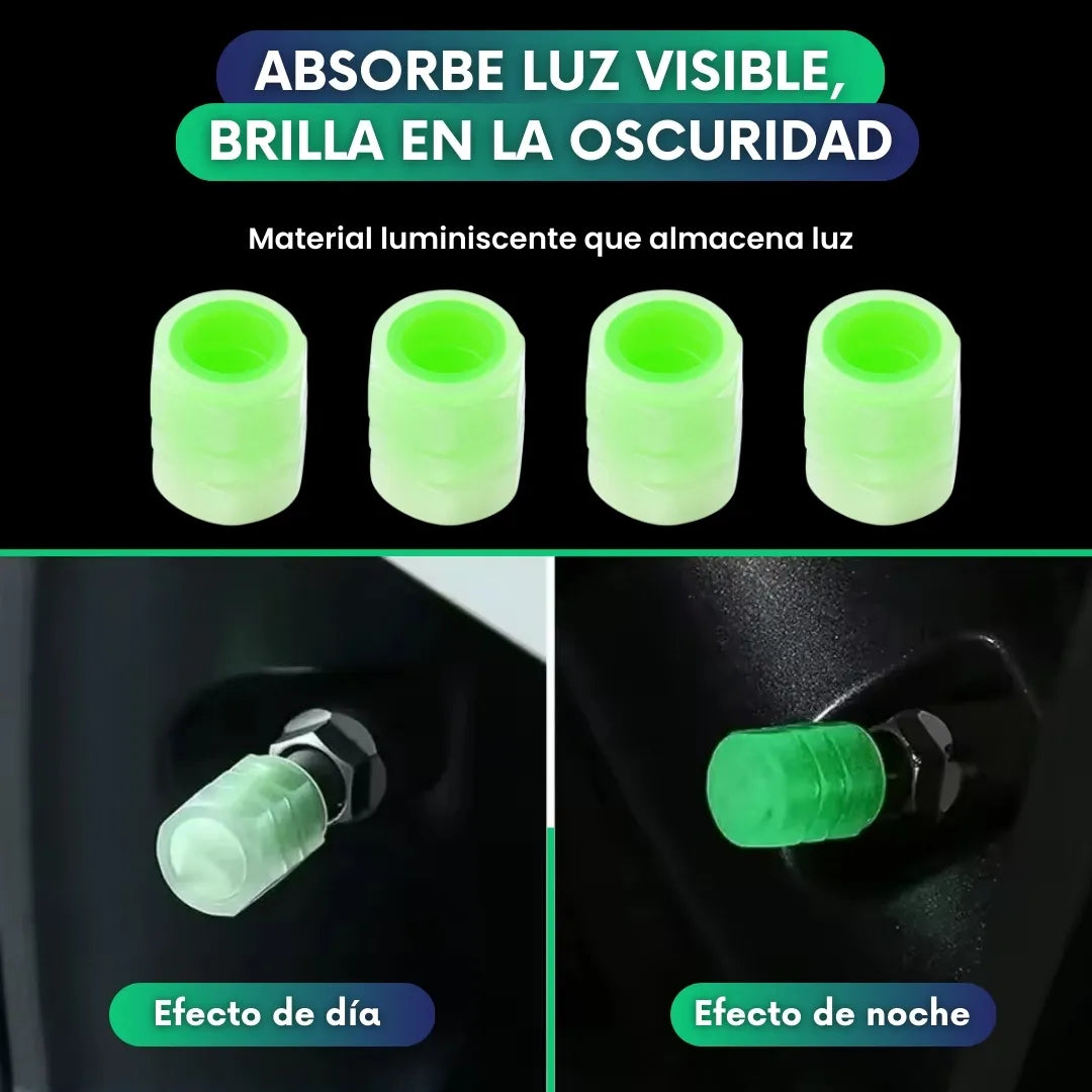 ✅ Función: Brillo en la oscuridad (tras exposición a la luz) y protección de válvula (polvo/agua).
